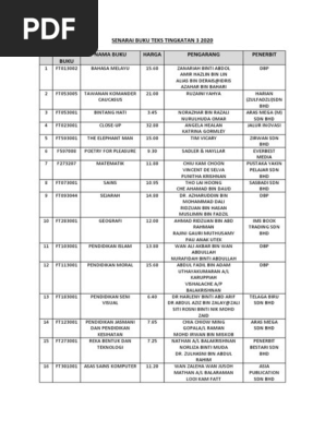 Senarai Buku Teks Beserta Harga 2020 2 Pdf